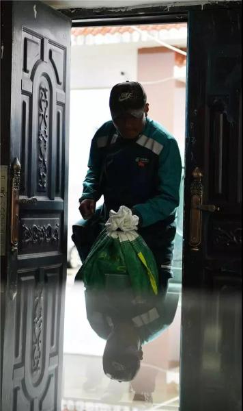 西藏自治区浪卡子县普玛江塘乡邮递员格桑次仁(藏族)正在寄送快递。由于身体原因,次仁曲巴目前已经不再担任普玛江塘乡的投递任务,接替他的是小伙子格桑次仁。