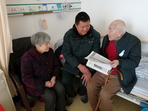 湖北省十堰市邮政分公司深入开展“比服务比质量比贡献,争创十星投递员”活动,充分调动投递员争先创优的积极性和主动性,使投递服务质量大幅提升。图为三堰投递站投递员邓大亮(中)为住院用户送去当日报纸。□王龙凤 摄影报道
