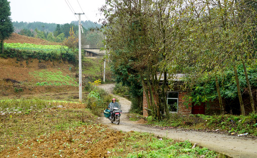 乡邮员行驶在田野乡间。记者  韩静桦  摄