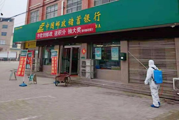 商丘市郊区邮政分公司郭村支局对营业网点内外消毒
