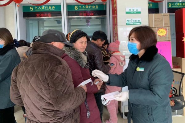 扶沟县邮政分公司大新支局为前来办理业务的客户免费发放口罩