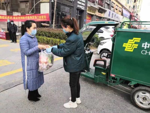 周口项城市邮政分公司启动了“无接触配送”服务,开通了免费送菜热线,市民只需要拨打配送电话订购,就能在家门口收到新鲜的蔬菜水果。