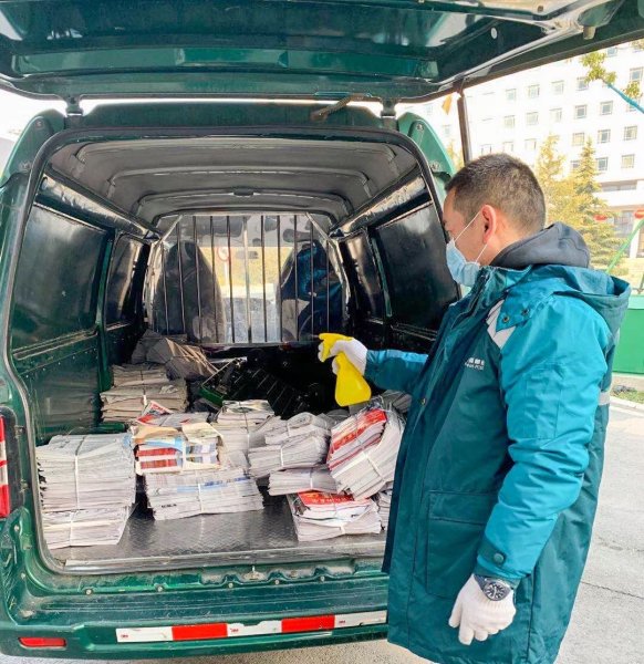 疫情期间,宋伟霞和其他两位投递员一样,都坚持每天早上6点半到单位,准备各项出班工作,并对报刊、信件、包裹进行第一次消毒;8点半之前到达省政府投递邮件前,用随身携带的消毒喷壶,对报刊、信件等进行二次消毒,确保邮件安全,让用户放心接收邮件。