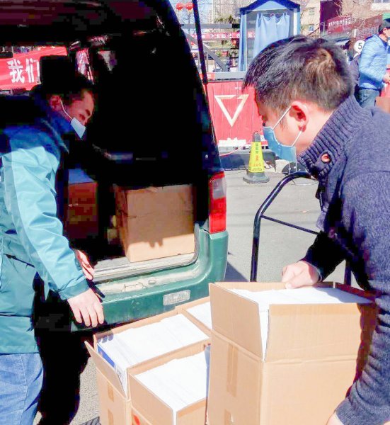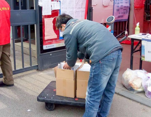 产业园揽投部员工为居家办公的客户配送办公物料