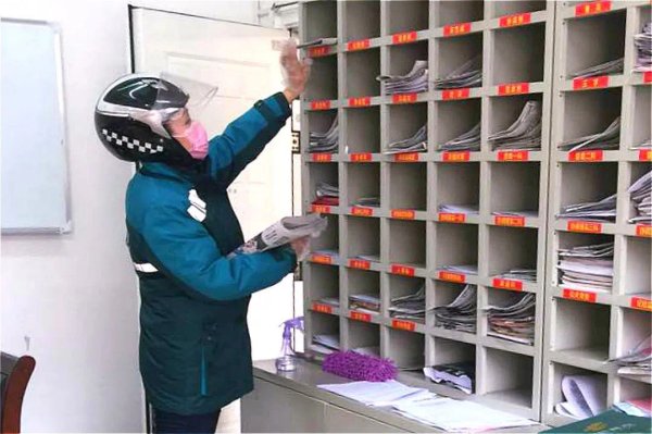 随着疫情防控形势越来越严峻,居民社区实行了封闭式管理,这给邮件投递带来了不少困难。特别是1月底以来,大部分快递公司歇业,几乎所有的包裹都涌向了邮政,工作量比平时翻倍增长,“金花”们每天投递邮件都要忙到晚上八九点。“危难关头,很多家庭在网上购买了防疫用品,数着日子等。一想到这些,我们都会加紧加急、优先保证这些‘救命包裹’的派送,我们身上担负着老百姓的信任和沉甸甸的嘱托。”在投递岗位工作了整整20年的李春丽感慨道,“虽然很忙,但姐妹们都不觉苦、不觉累,与在前方舍命守护大家的医护人员相比,我们只是做了应该做的。”