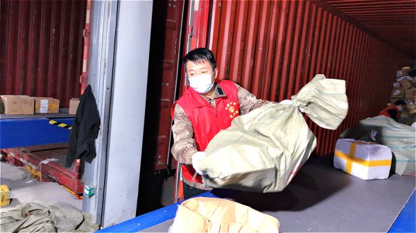 儿子白天要去小区值守,晚上也没闲着。受疫情影响,进出口邮件量激增,邮件处理工作人员不足。于是,他每天值守结束后,晚上就到邮件处理中心帮忙装卸邮件。有一天他说累得腰有点疼了,我劝他休息一天,他说自己年轻、身体好,睡一觉就好了!并且在参军时就练就了“铜墙铁壁”,虽然辛苦忙碌,但是再忙再累也值得。