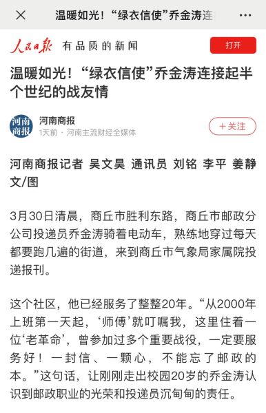 近日,全省各大媒体纷纷报道商丘市邮政分公司的投递员乔金涛,为啥这位邮政快递小哥得到了各媒体的竞相关注呢?