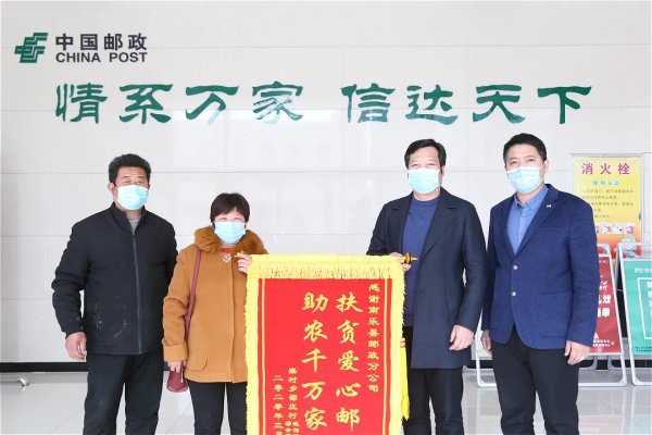 3月31日上午,南乐县梁村乡村民邵会堂夫妇手拿题有“扶贫爱心邮 助农千万家”的锦旗,满怀感激之情来到南乐县邮政分公司,对邮政通过“职工爱心邮 扶贫千万家”活动打开梁村乡邵庄村贫困户滞销晚秋黄梨的销路表示感谢。