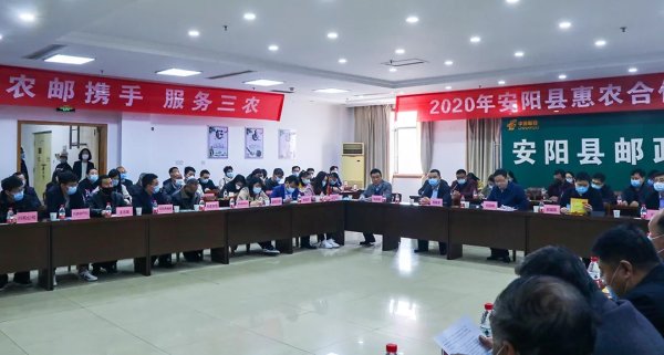 近日,安阳县邮政分公司与县农业农村局联合举办了2020年安阳县惠农合作现场会,安阳县副县长何国峰出席会议,县农业农村局、商务局、扶贫办、金融办、邮政分公司、邮储银行、各乡镇政府相关负责人,以及所辖10个农民合作社代表参会。