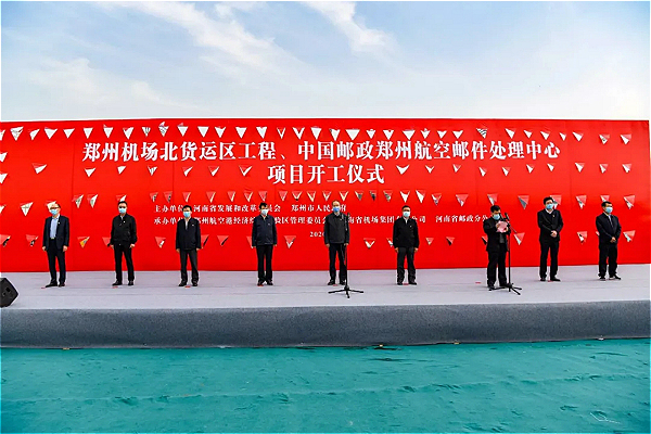 4月16日上午,河南省人民政府在郑州航空港实验区举办了中国邮政郑州航空邮件处理中心项目、郑州机场北货运区工程开工仪式,河南省委常委、常务副省长黄强出席开工仪式并宣布工程正式开工。