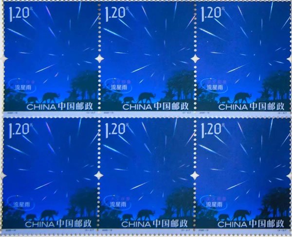 “流星雨”邮票采用了立体幻彩材料来突显时而一泻千里、时而一闪即逝流星雨的效果。