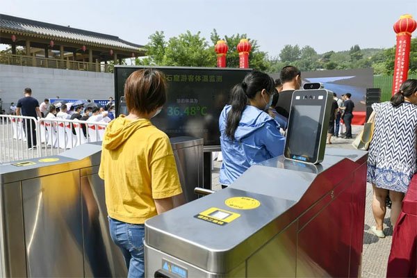 为做好防疫安全工作,入园闸机嵌入了体温监测装置