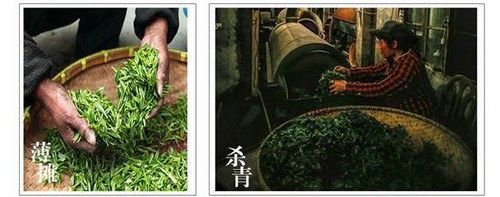 ?去掉青草气及部分水气。把握好锅温及力度,加压先重后轻,需时7~10分钟,使茶坯紧细成条。