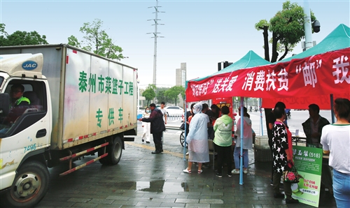 泰州邮政与泰州农业农村局联合举办“新型农业经营主体农副产品社区行”公益助农活动。□周群峰 摄