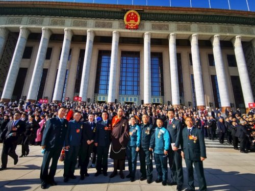 部分邮政全国劳模接受表彰后在人民大会堂前合影留念。