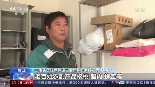 云南省怒江傈僳族自治州称杆乡邮递员 桑南才:今年还是可以的,老百姓农副产品核桃、腊肉、蜂蜜等,今年邮寄出去的将近万把斤。现在乡亲们管我叫“托厄哈扒” 。