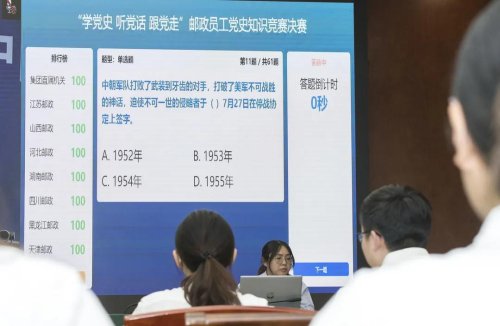 据了解,为庆祝中国共产党成立100周年,推动邮政员工学党史、悟思想、办实事、开新局,增强“四个意识”、坚定“四个自信”、做到“两个维护”,根据《集团公司党史学习教育实施方案》,集团公司近期组织开展了“学党史 听党话 跟党走”邮政员工党史知识竞赛活动,吸引了广大员工踊跃参与。活动期间,全系统共约20万员工积极参与线上答题。通过每周对答题得分情况进行排名,评选出“每周之星”400人和整个“初赛之星”100人,并予以奖励,较好地激发了全系统学习党史的积极性主动性,营造了浓厚的学习氛围。