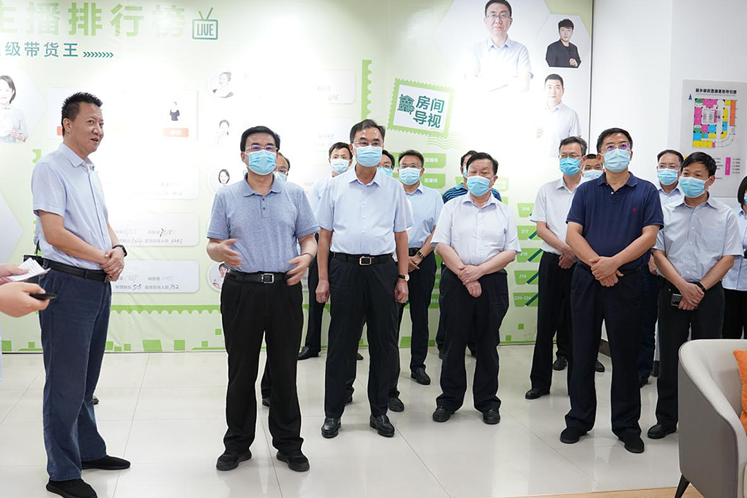 何金平(左二)一行在新乡市分公司电商直播基地调研