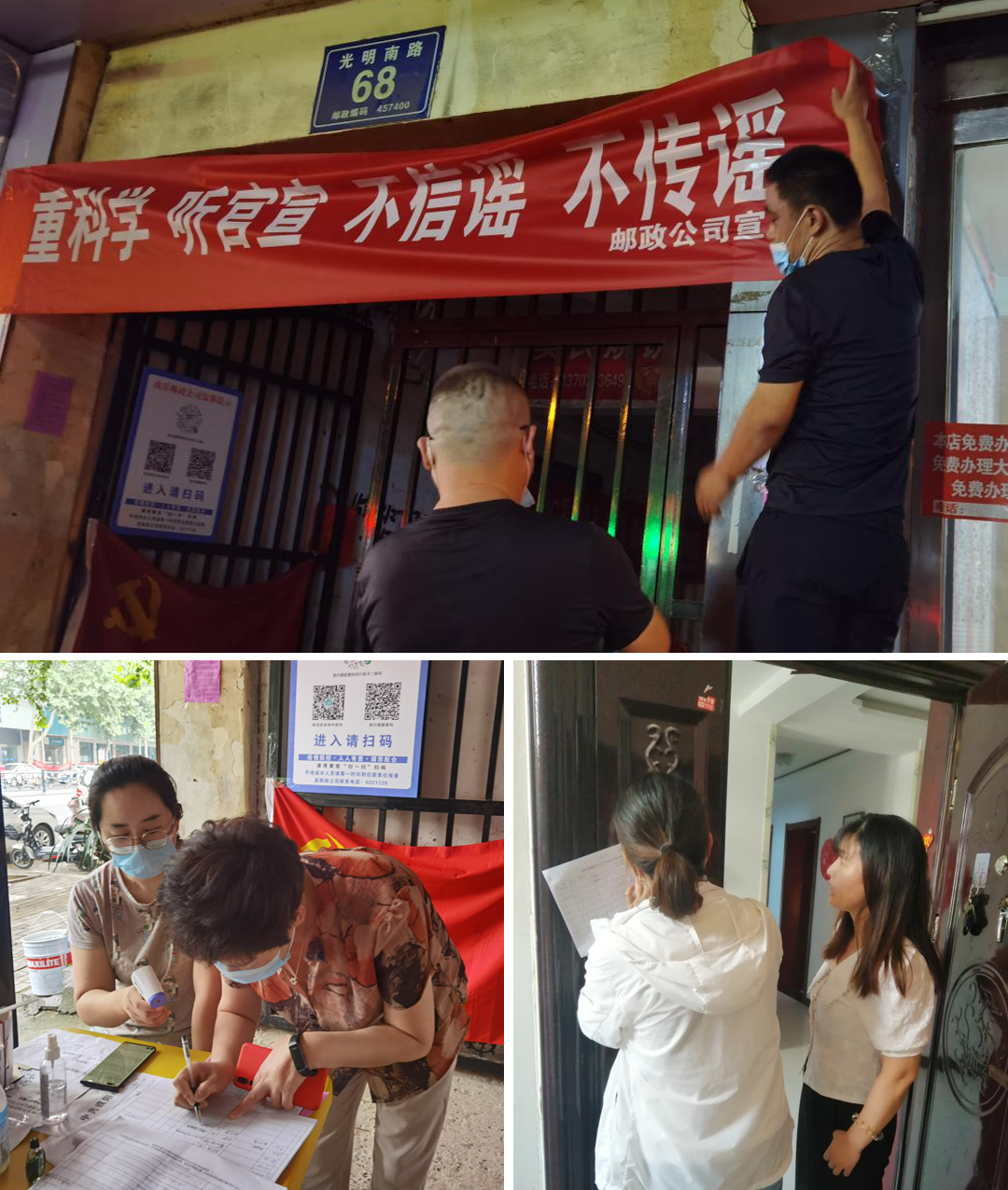郑州市二七区邮政分公司和新郑市邮政分公司志愿者,配合社区开展全员核酸检测的布置场地、维持秩序、引导检测等工作。
