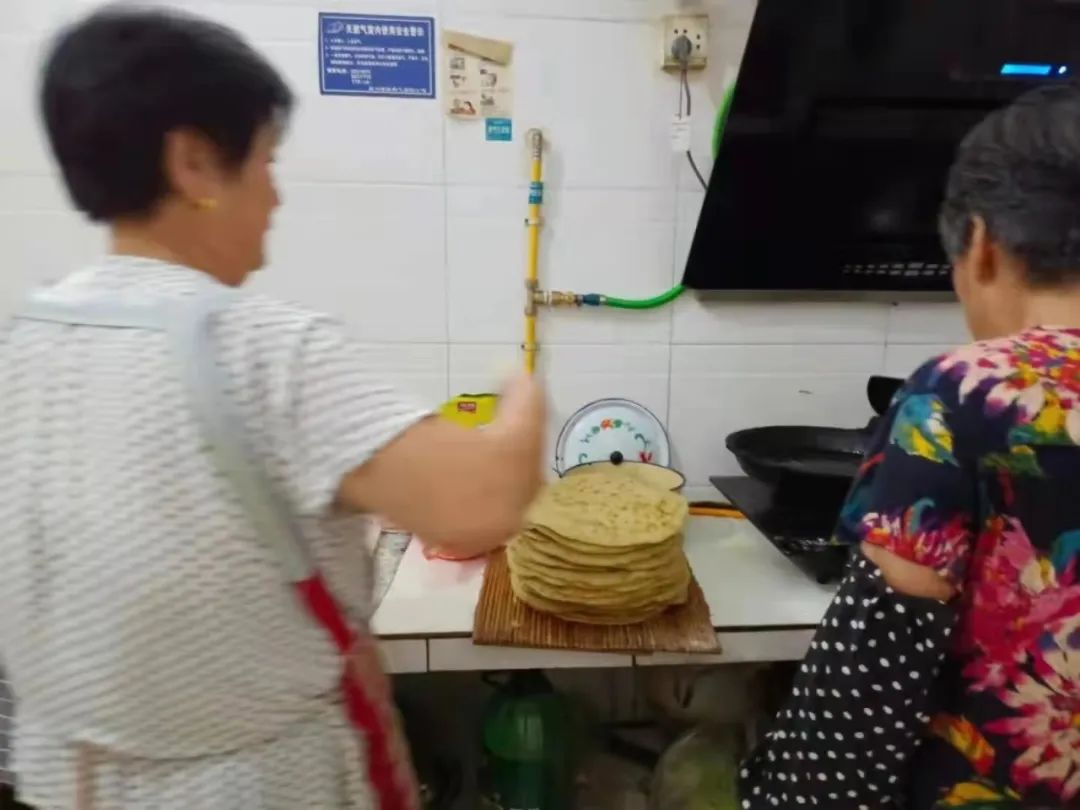 赵永母亲和邻居一起为突击队员制作葱油饼