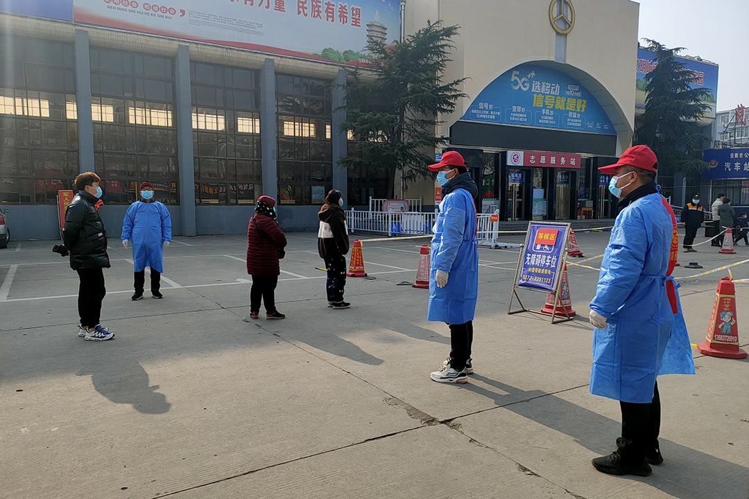 在凛凛寒风中,志愿者们根据检测点的安排,穿好防护服,在确保自身健康安全的前提下,有序开展人员排查、信息登记、秩序维护、防控宣传等工作,得到了当地群众肯定。