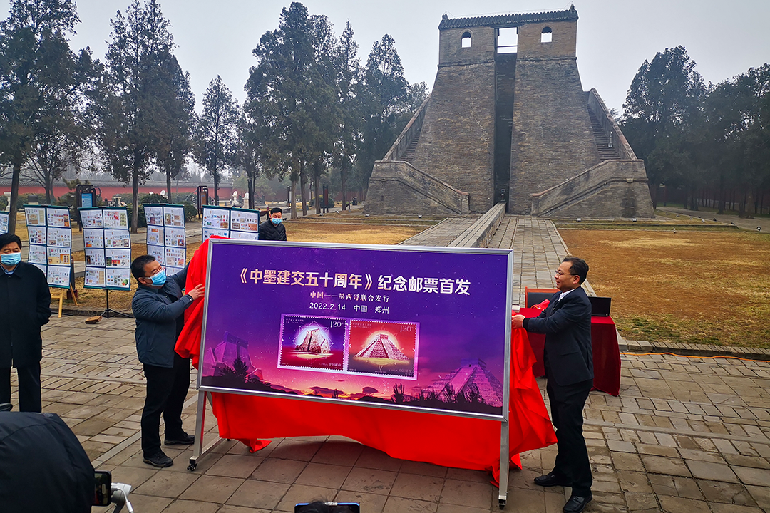 当天上午,郑州市邮政分公司在登封市告成镇观星台景区举办了《中墨建交五十周年》纪念邮票首发仪式,并通过中国集邮邮票百科小程序对活动进行了全程直播。该套邮票的发行,成为了中墨建交五十周年的美好见证,使中华文明与玛雅文明于方寸之间交相辉映。