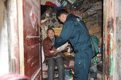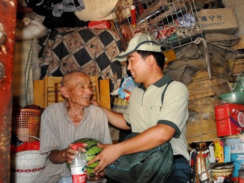 炎热夏日,张军看望孤寡老人。