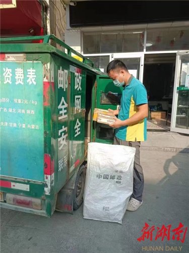 9月12日,秋高气爽,艳阳高照。在新晃侗族自治县扶罗镇东风村,一位名叫杨平的60岁老人,接过扶罗邮电支局邮递员杨传德送来的农用物资,心里充满感激。老人一个劲地邀请小杨进屋休息一会,吃碗甜酒再走。小杨谢过老人的好意,又踏上三轮摩托车,消失在山湾湾之中。