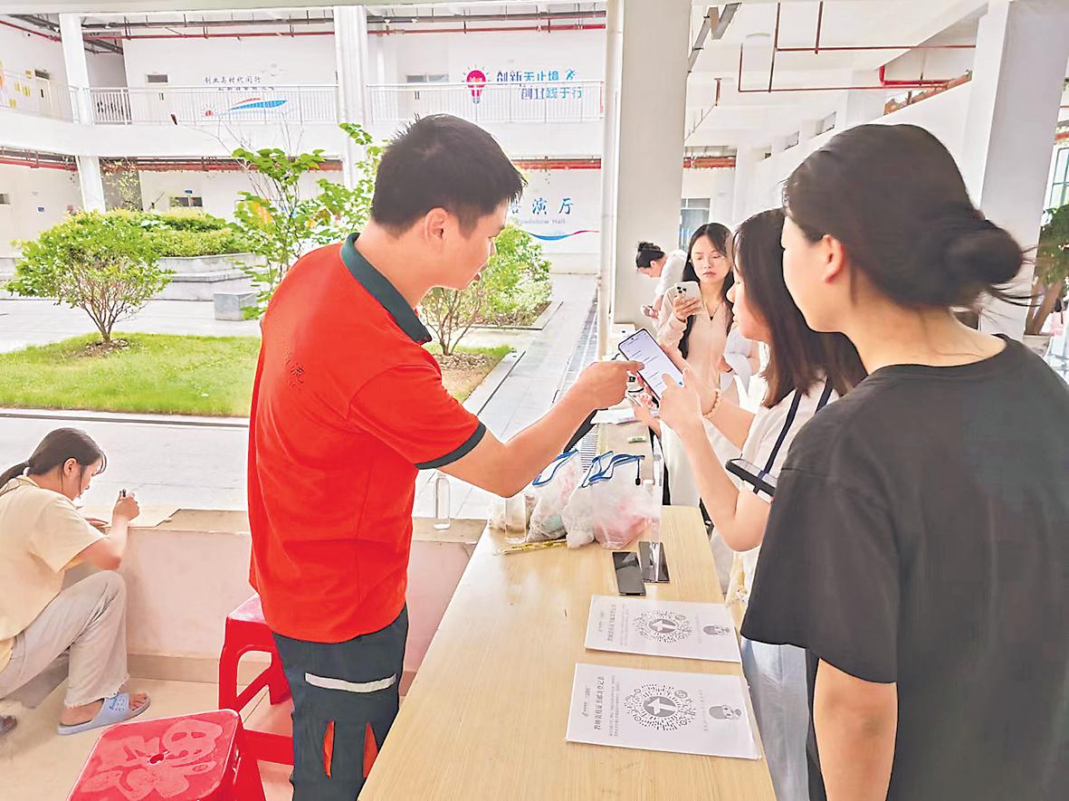 近日,江西省宜春市袁州区邮政分公司员工深入校园,为毕业生轻松返家提供方便。有的毕业生还通过邮政办理了教师资格证书邮寄业务,实现了领取教师资格证“零次跑”。□胡慧玲 王琴 摄影报道