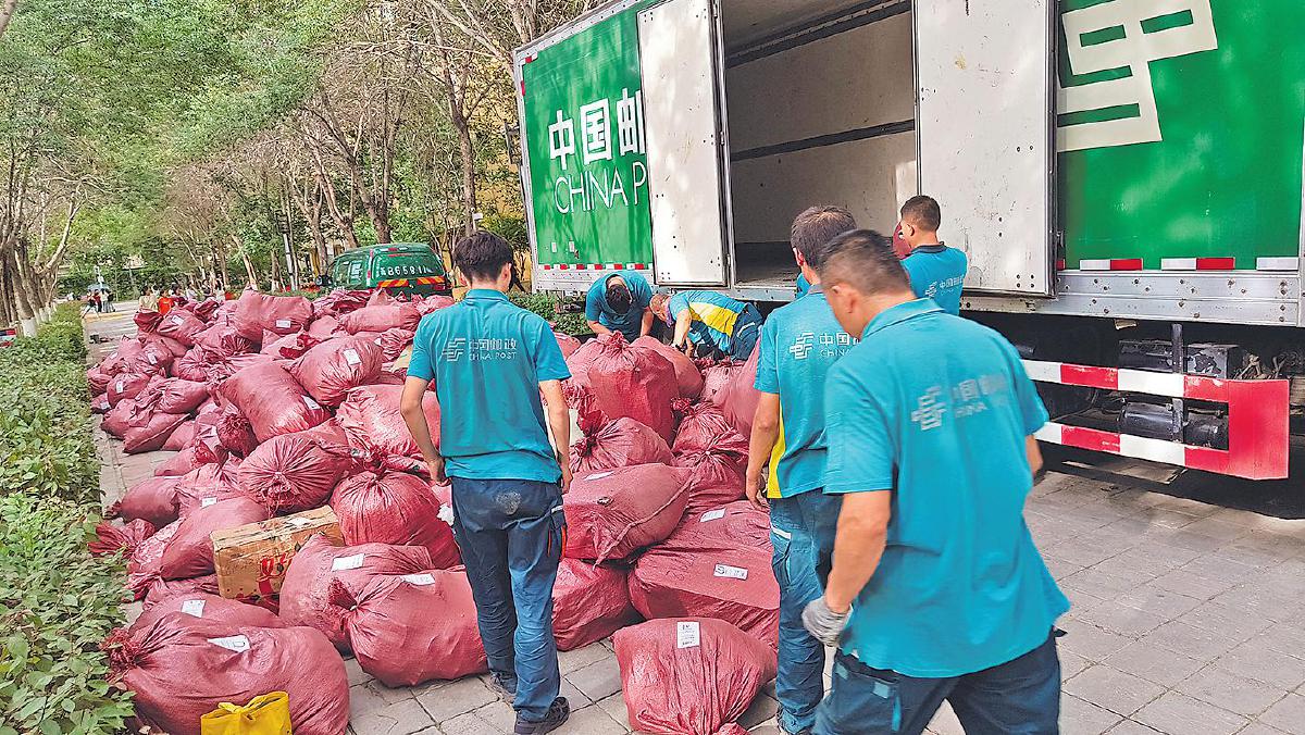 日前,为做好毕业季服务工作,新疆维吾尔自治区昌吉回族自治州邮政分公司在校园设立邮政包裹收寄点,工作人员在清晨就开始收寄前的准备工作,最大限度确保当日揽收的校园包裹当日发运。优质的服务受到师生的广泛赞誉。□李广文 摄影报道