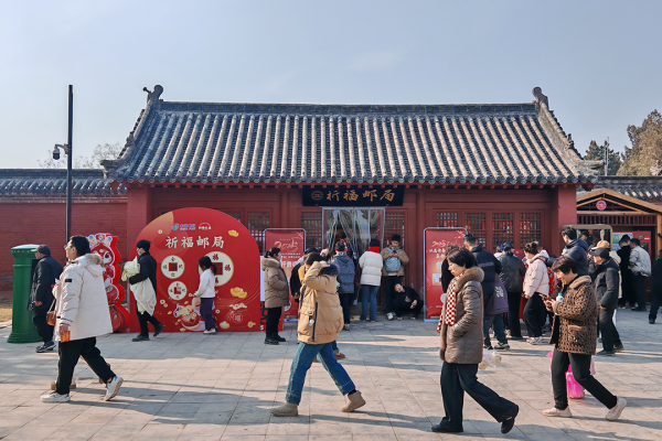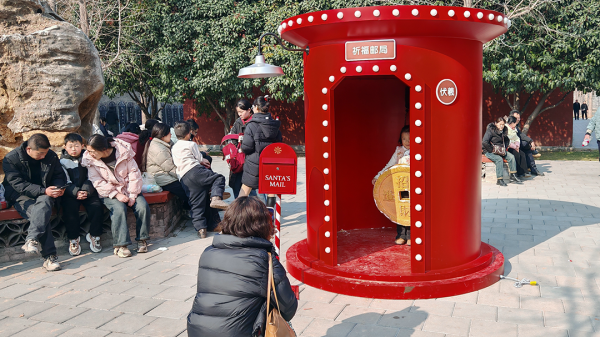 主题邮局外部的投币祈福区、祈福邮筒、龙年祈福墙三个打卡点,吸引人们怀着对新年的美好憧憬和期待纷至沓来。