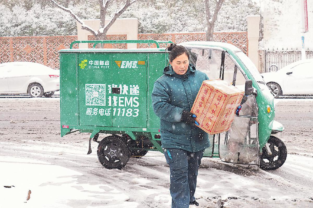 “她”力量是勇敢与坚韧。近日,河南迎来了“桃花雪”,面对投递路上的困难,河南省商丘市郊区邮政分公司南京东路揽投部投递员李长娥,冒着凛冽寒风与纷飞雪花,将快递包裹按时送到客户手中。她的身影也成为雪天里一道令人动容的“风景”。□何水清 摄影报道