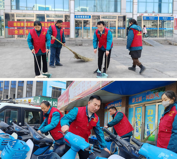 新密市邮政分公司组织党员以及团员志愿者走上街头,打扫街道上的垃圾和广告牌,以自己的实际行动营造整洁、舒适的城市环境。