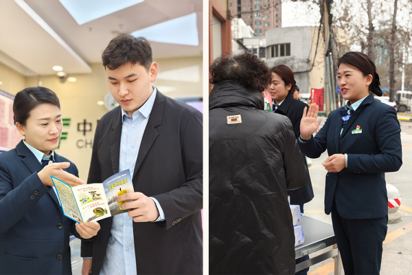 新乡市卫滨区邮政分公司网点员工从厅堂走进社区,向群众宣传金融知识,讲解集资的危害,呼吁大家护好“钱袋子”。