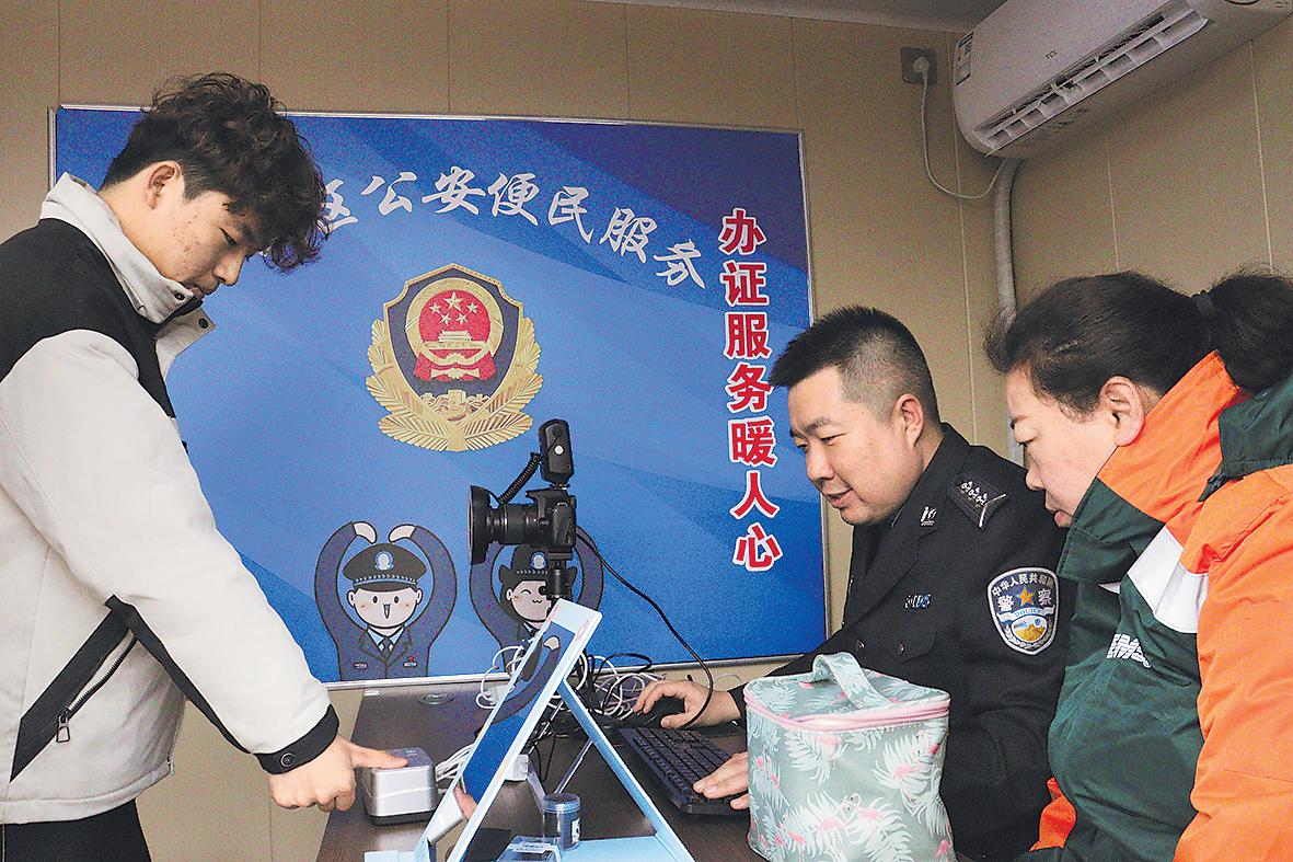 3月27日,一辆写有“一次不用跑 服务送到家”标语的警邮流动服务车开进内蒙古建筑职业技术学院,引来师生们的围观。
