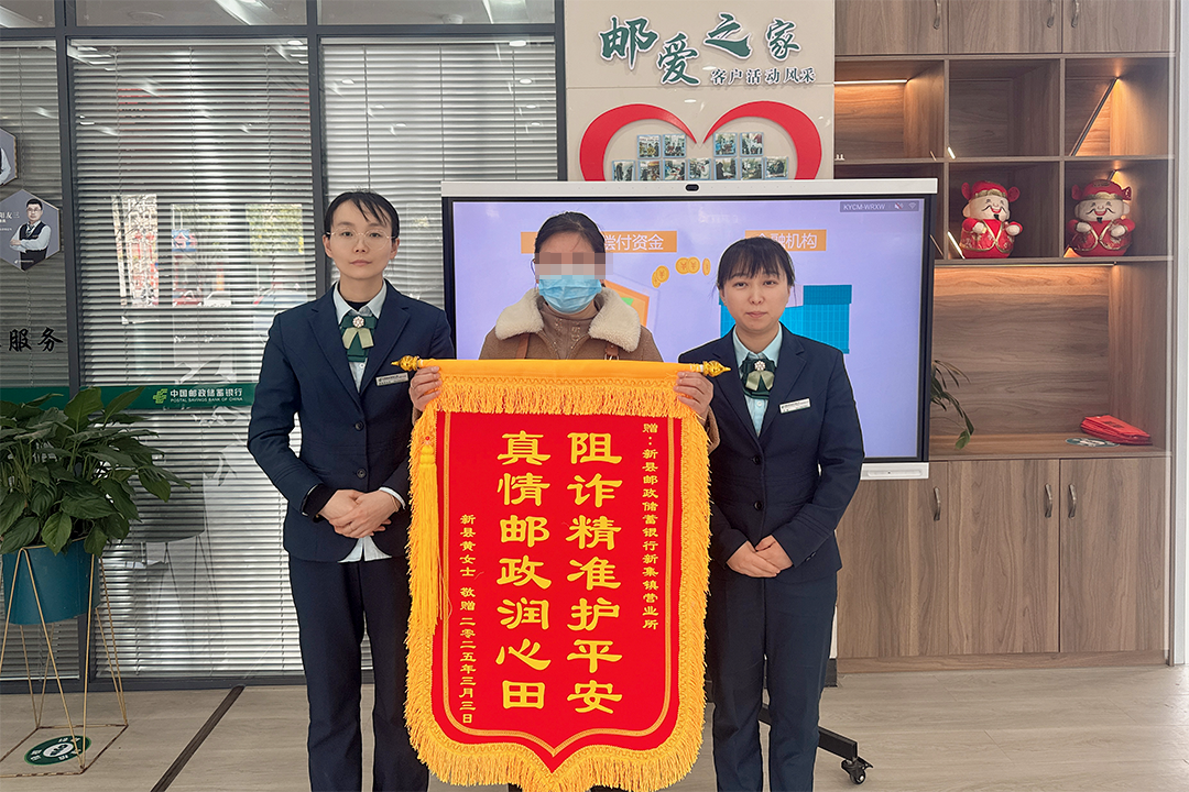 “要不是你们专业果断,我的70万存款就全没了!”近日,用户黄女士来到信阳新县新集邮政支局,将一面绣着“阻诈精准护平安 真情邮政润心田”的锦旗,交到了支局工作人员的手中,而这面锦旗的背后,是一场惊心动魄的反诈阻击战。