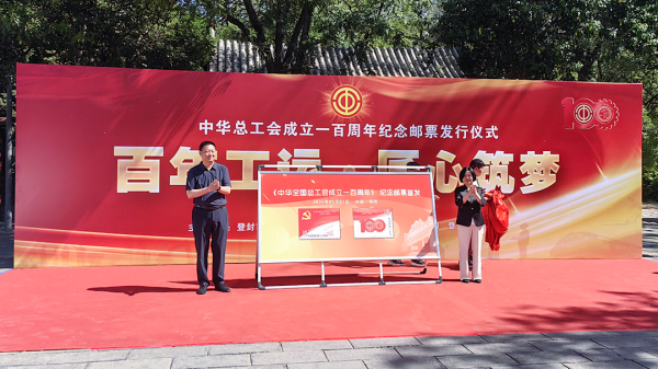 为庆祝中华全国总工会成立一百周年,郑州市邮政分公司在全区开展了形式多样的邮票发行活动。