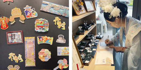 主题邮局外观巧妙融合了宋代建筑风格,飞檐斗拱、雕梁画栋、古色古香。主题邮局內,典雅的木质货架上摆满了琳琅满目的集邮文创产品,尤其是五彩斑斓的冰箱贴,围绕宋文化,融入了开封特色景点、小吃美食和宋代诗词、服饰等设计元素,备受游客喜爱。