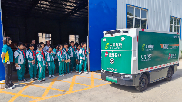5月18日,濮阳市昆吾小学的少先队员,来到濮阳市经济技术开发区邮政分公司黄河路直投中心,开展了“幸福快递,‘智’在必达”社会实践活动,零距离体验无人车投递、邮件自动分拣。