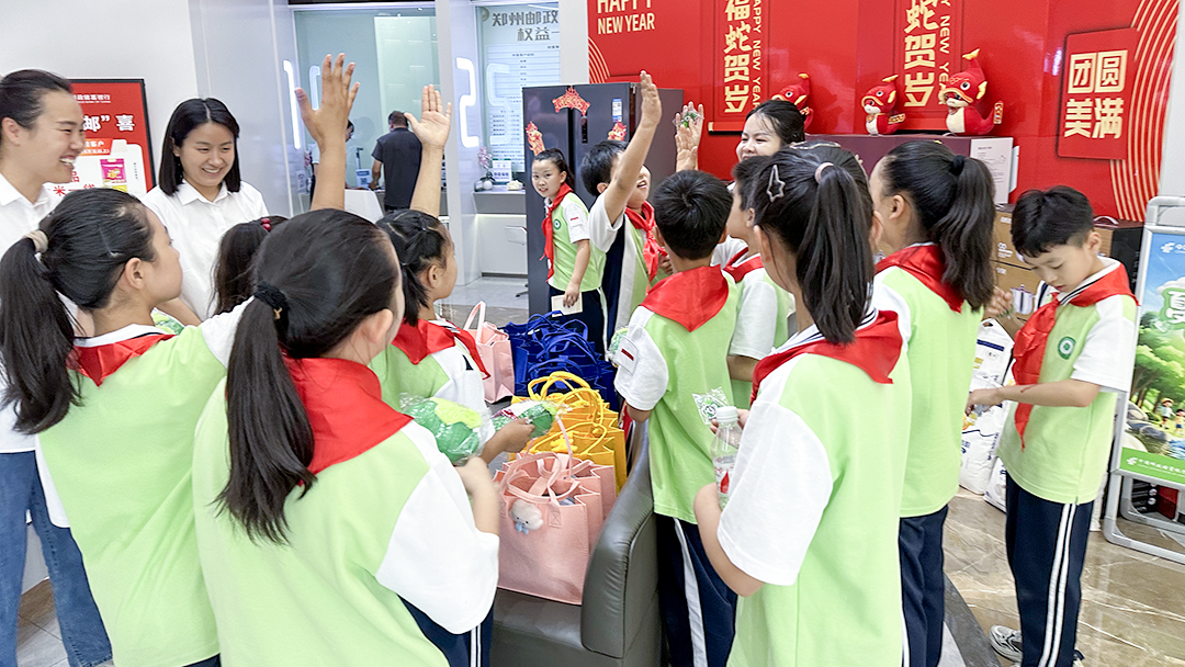 5月21日,郑州市南曹小学的少先队员代表来到郑州市经济技术开发区商都路邮政支局,开展校外研学活动。活动中,少先队员们有序参观了营业厅各个功能区域,探寻身边的邮政故事。