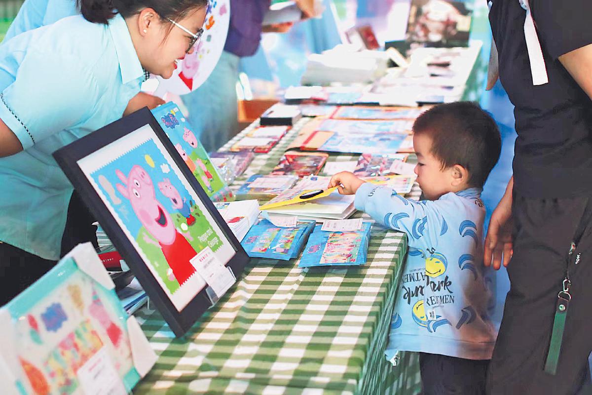 《小猪佩奇》邮票发售活动吸引亲子家庭参与。 □杨承峻 摄