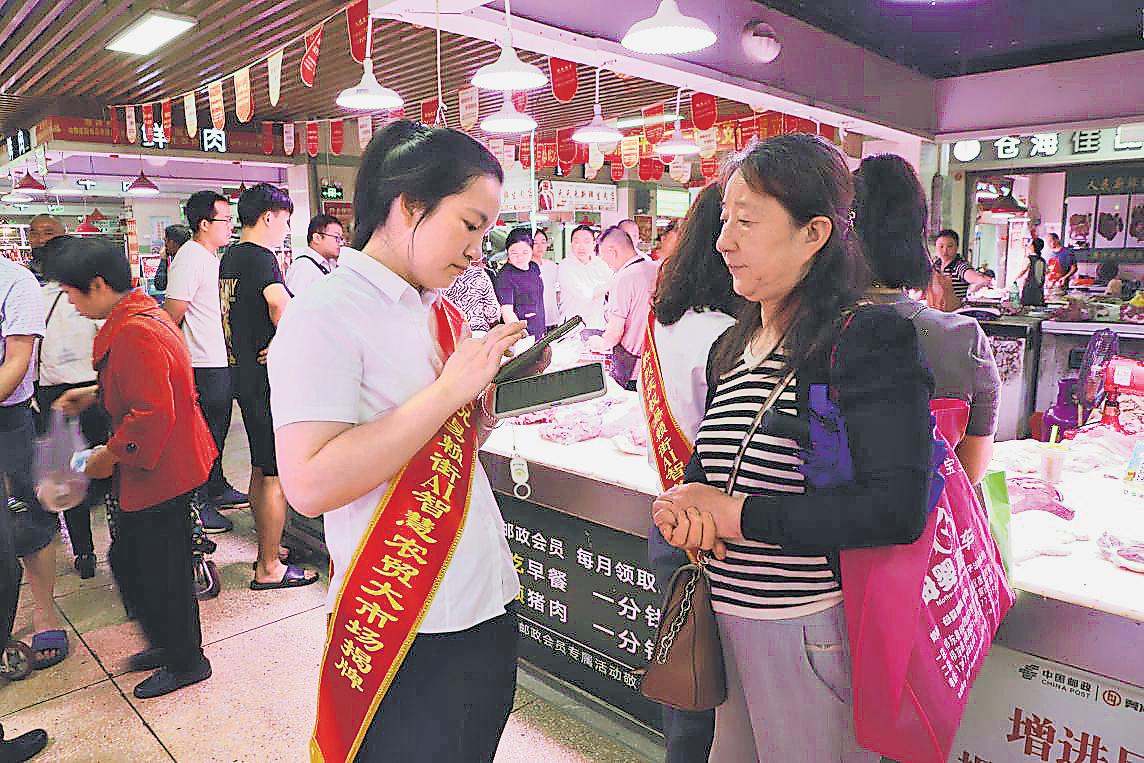 易赖街农贸市场的蝶变,始于石鼓区分公司的精准走访。“我们通过对传统农贸市场的走访发现,这些传统农贸市场普遍存在溯源难、管理粗放等问题,于是,我们实行‘科技赋能+金融嵌入’双轮驱动,出台‘智慧市场+金融生态’的解决方案。”石鼓区分公司AI智慧菜市场项目成员肖阳说。项目启动初期,该分公司成立了专项工作小组,联动衡阳市分公司金融业务部、湘邮科技和服务商等组建攻坚团队,主动对接衡阳市商务局、市场监督管理局及市场运营方,从食品安全溯源、经营效率提升、消费者权益保障三个维度制定方案,最终以邮政投入智慧系统与设备的方式,促成深度合作。在运营服务中,衡阳市分公司运用“数字网格靶向法”,以易赖街市场为中心划定5公里服务圈,制定“每日两次走访、每日新增3户商户”的攻坚计划,将市场内干货、熟食、水产等8大品类商户通过分户管户至专属团队,实行“谁开发谁维护”的台账式管理。同时推出“四季暖心计划”,夏季为商户送冰镇凉茶、冬季送驱寒姜茶,全年提供零钞兑换、资金结算咨询等服务,对高频交易商户开通“绿色通道”,15分钟内解决问题。