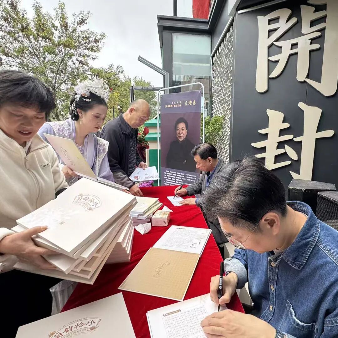 当天开业的汴河七盛角邮驿位于开封七盛角民俗文化街内,毗邻大宋御河,周边环绕仿宋建筑群。开业仪式上,汴河七盛角邮驿举办了《菊韵拾珍》个性化邮票、邮品签售活动,邀请该邮票设计者张帆、附图原稿创作绘画者李增喜为市民游客签名留念,吸引集藏爱好者们争相购买《菊韵拾珍》邮资票品。