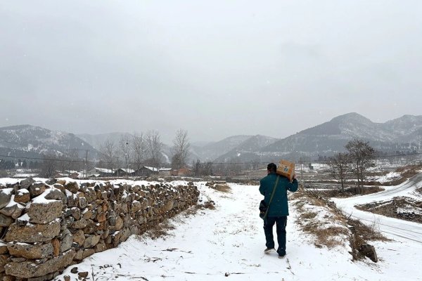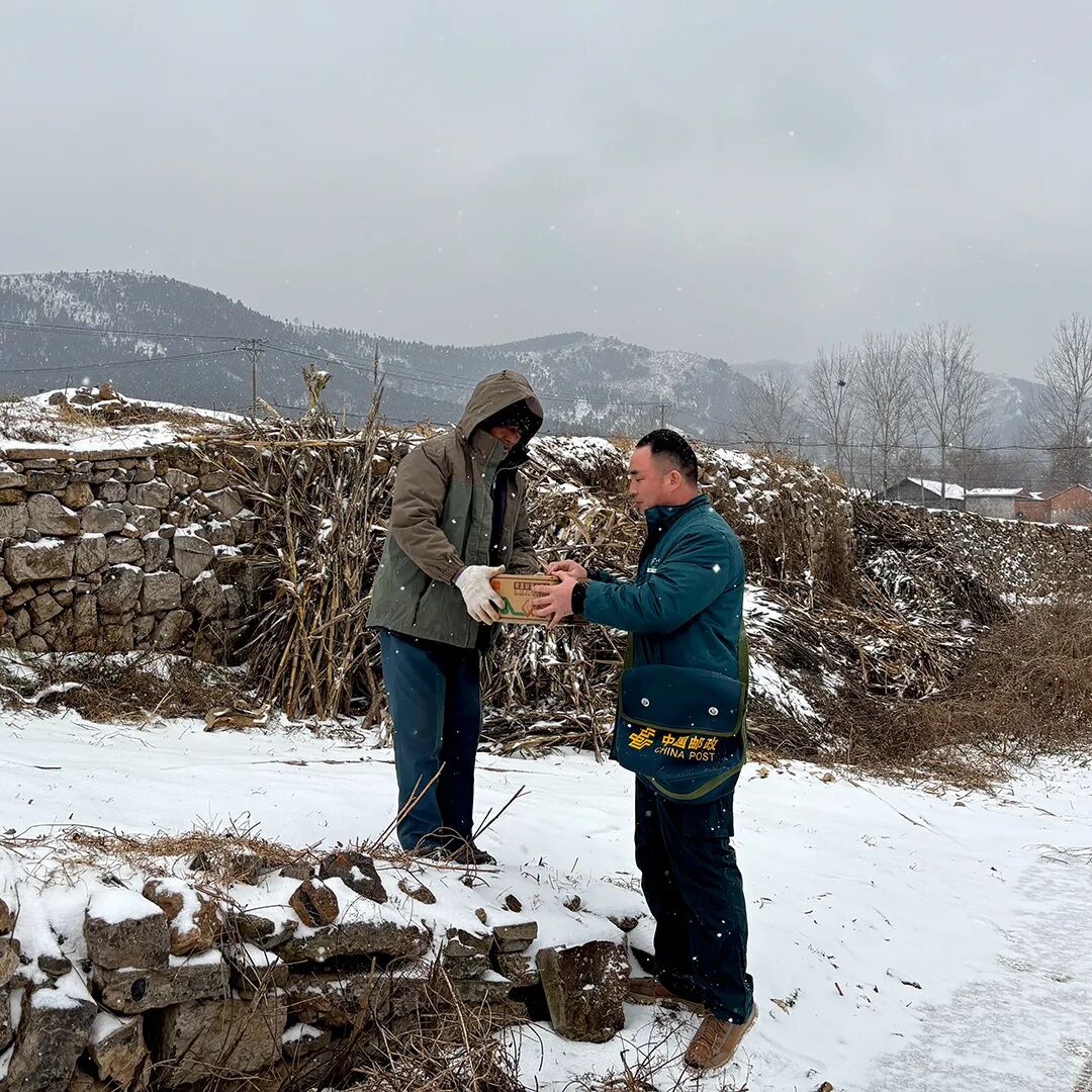 普降大雪,山路难行。为确保邮路不中断,林州市邮政分公司部分山区投递员徒步为村民投送包裹,在寂静的雪色中,他们成为最可靠的“摆渡人”。