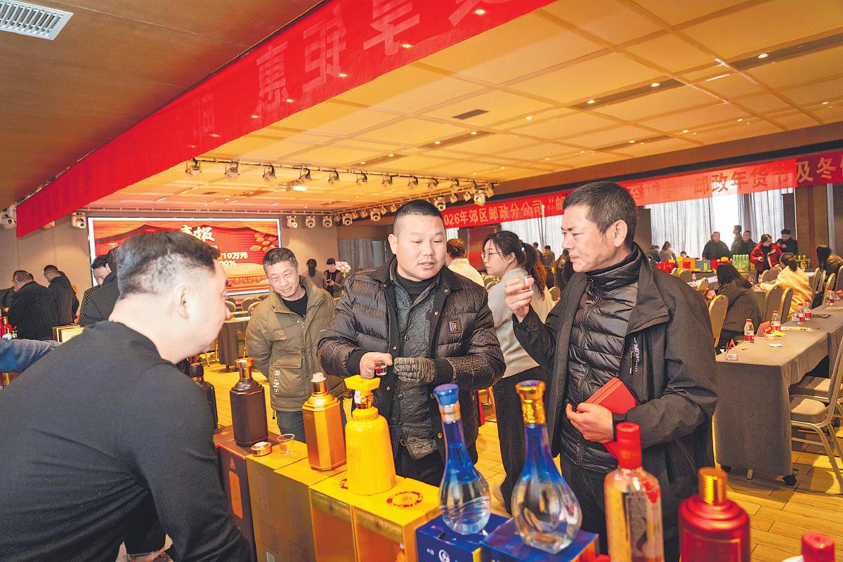 “家人们,邮政年货商品优惠多多,配送到家,错过可就亏啦!”1月15日,河南省南阳市宛城区瓦店镇的邮政便民服务站里,店主钱老板正在通过手机进行直播。镜头前,粮油产品码放整齐,礼盒、白酒包装锃亮醒目,直播间问询弹窗不断跳动。这场乡土直播,正是南阳市邮政分公司推动工业品下乡的生动缩影。