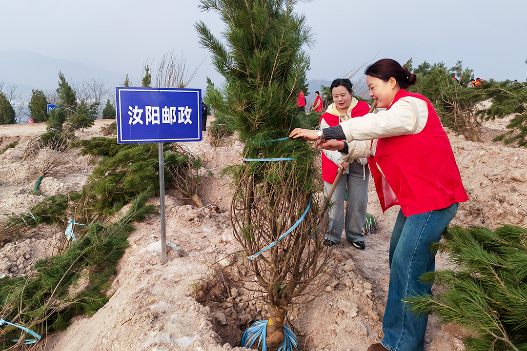 汝阳县邮政分公司积极响应县委、县政府号召,组织党员、团员青年及职工代表,在前坪水库植树点开展义务植树活动,为汝阳大地培植绿色山河、守护生态家园。