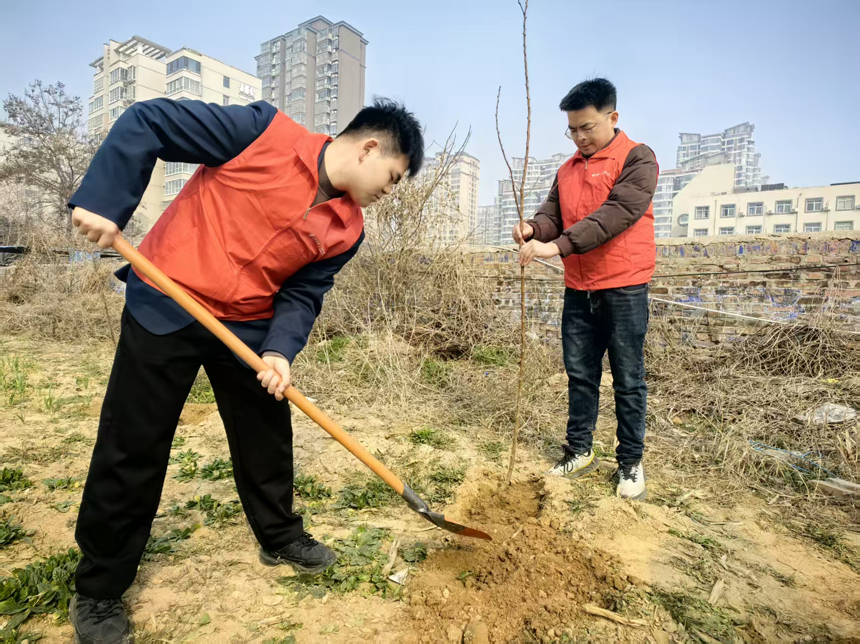 洛阳市邮政分公司组织志愿者,在周王城广场开展义务植树活动,为千年古都增添新绿。挥锹铲土、扶苗填坑、围堰浇水、踩实培土……经过一番劳作,数十株高杆月季迎风挺立,增添了城市生态活力,寄托着邮政人对古都洛阳的美好期许。