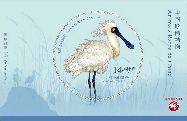 澳门邮电局发行的《中国珍稀动物》邮票小型张,省邮电科技有限公司采用胶雕工艺方式印制。邮票画面以黑脸琵鹭为主题。琵鹭的双腿以刚劲有力的刻线勾勒出修长的轮廓,凸显琵鹭挺拔的姿态。通过对刻线的粗细、疏密、走向的极致把控,该邮票完美呈现了黑脸琵鹭羽毛的蓬松感与层次感。其身体主体羽毛采用粗细渐变的线条塑造,立体的羽毛仿佛触手可及。而腹部绒毛以极细、极密的短线条雕刻,凸显绒毛的柔软、蓬松,尽显工艺的细腻入微。粗细刻线的精妙运用,黑脸琵鹭的肢体细节、羽毛质感与神态被刻画得栩栩如生,彰显了珍稀动物的灵动神韵。