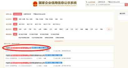第3步:空白处输入申请人名称并点击“搜索”,截取当前页面。