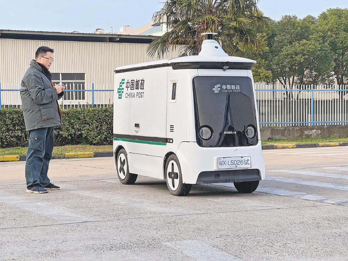 苏州邮政工作人员操控无人车。